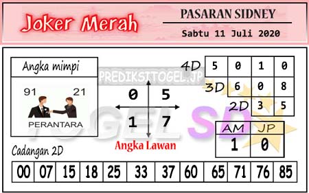 Prediksi Joker Merah Sabtu 11 Juli 2020